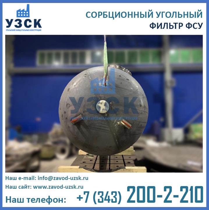 Качественную работу отопительных и промышленных котельных, линий по очистке конденсата и природных вод, электростанций обеспечивает фильтр сорбционный угольный типа ФСУ — вертикальный сосуд с одной камерой цилиндрической формы. Основное назначение оборудования состоит в глубокой очистке возвращаемого с производства конденсата от запахов, органических загрязнений и привкусов. Использование ФСУ в системах водоподготовки гарантирует очищение субстанции от масел, органических примесей, остатков нефтепродуктов до нормального значения — 0.52-1.0 мг/л. Купить в Армении угольные фильтры предлагает наш Уральский завод стальных конструкций. Мы выполняем производство ФСУ под нужды предприятия, возможно изготовление сорбционных фильтров ФСУ из нержавеющей стали включая корпус и внутренние устройства.